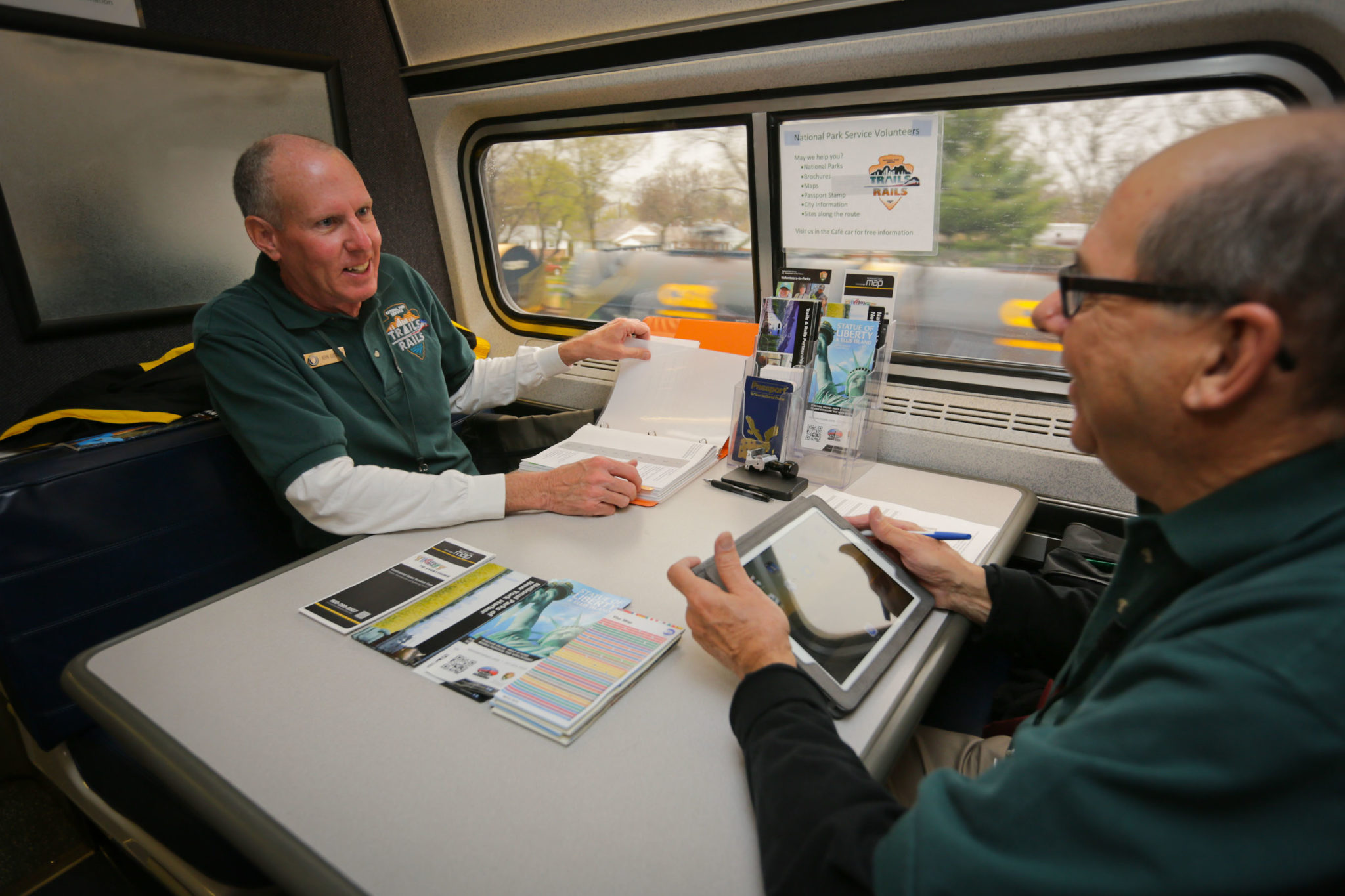 Le Trails & Rails est une célébration de la beauté naturelle de l’Amérique et du long partenariat entre les chemins de fer et les parcs nationaux : des guides bénévoles du National Park Service vous accompagnent à bord de certains trains et vous expliquent tout ce qu’il faut savoir sur les ressources historiques et naturelles de la région tout au long de votre voyage en train, grâce à des programmes guidés captivants. Les programmes Trails & Rails incluent de nombreux parcs et monuments énumérés ci-dessus. Consultez la page Trails & Rails pour en savoir plus sur cette expérience unique de découverte de l’Amérique.