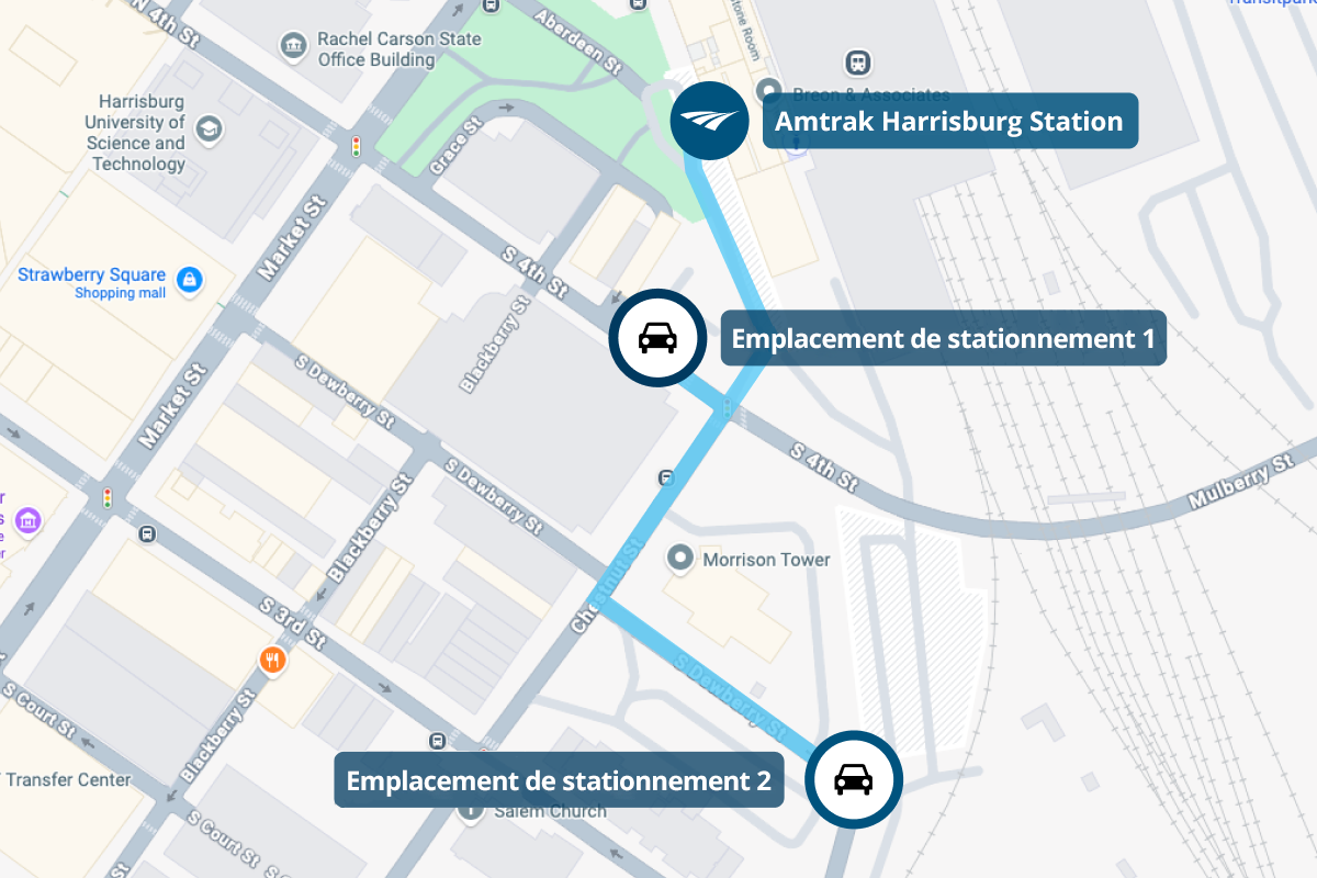 À quelques pas seulement de la gare, nous proposons un stationnement payant via code QR aux lieux suivants :